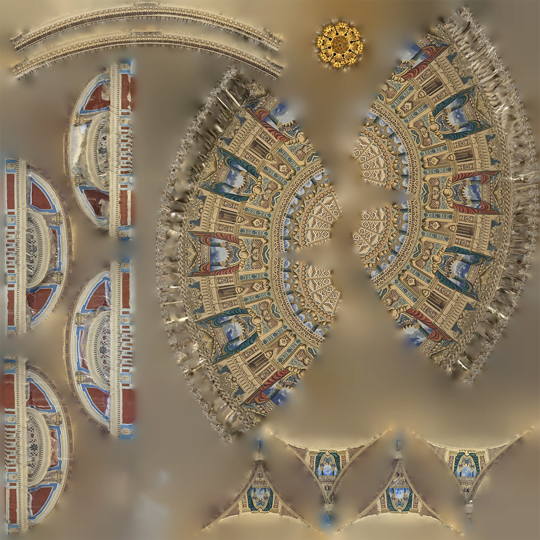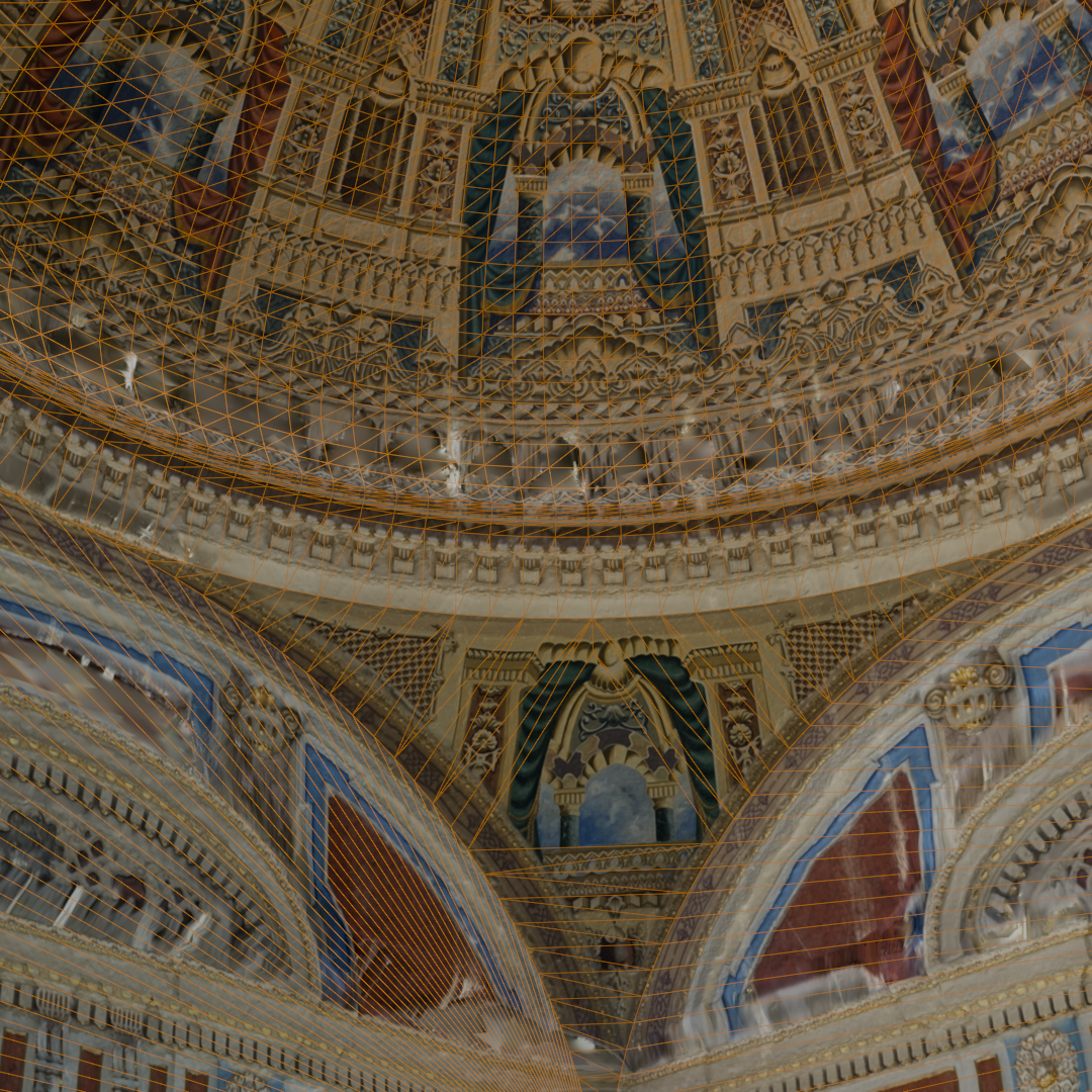 Telefon kamerası ve zemin kat çekimin sınırlandırmaları kubbedeki çıkmaların arkasında kalan bölgelerde görülüyor. Bu bölgeler zeminden görülmediği veya tek açıdan görülebildiği için doku olarak yeniden oluşturulamıyor. Gerçek bir restorasyon çalışmasındaki gerekli detay seviyesi için drone ve iskele ile lazer taraması şart.
